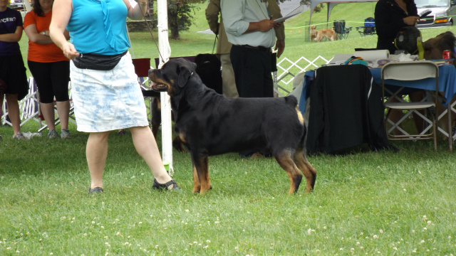 VonBremen's Bohemian Rhapsody aka Queenie taking 2nd in Bred By exhibitor At The Colonial Rottweiler Club Speciality